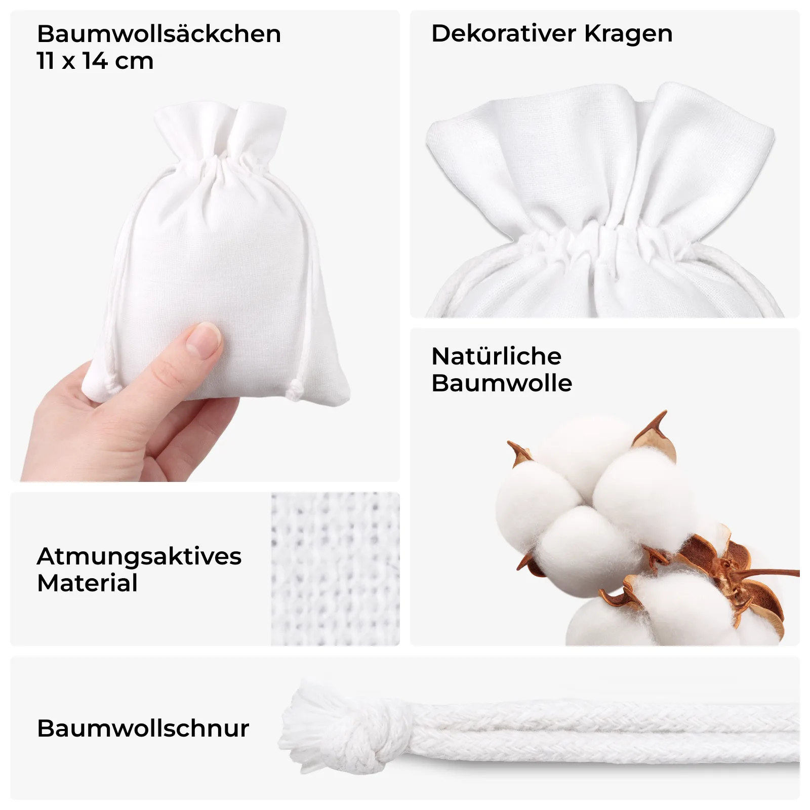 10 St. Baumwollsäckchen 11 x 14 cm - weiß