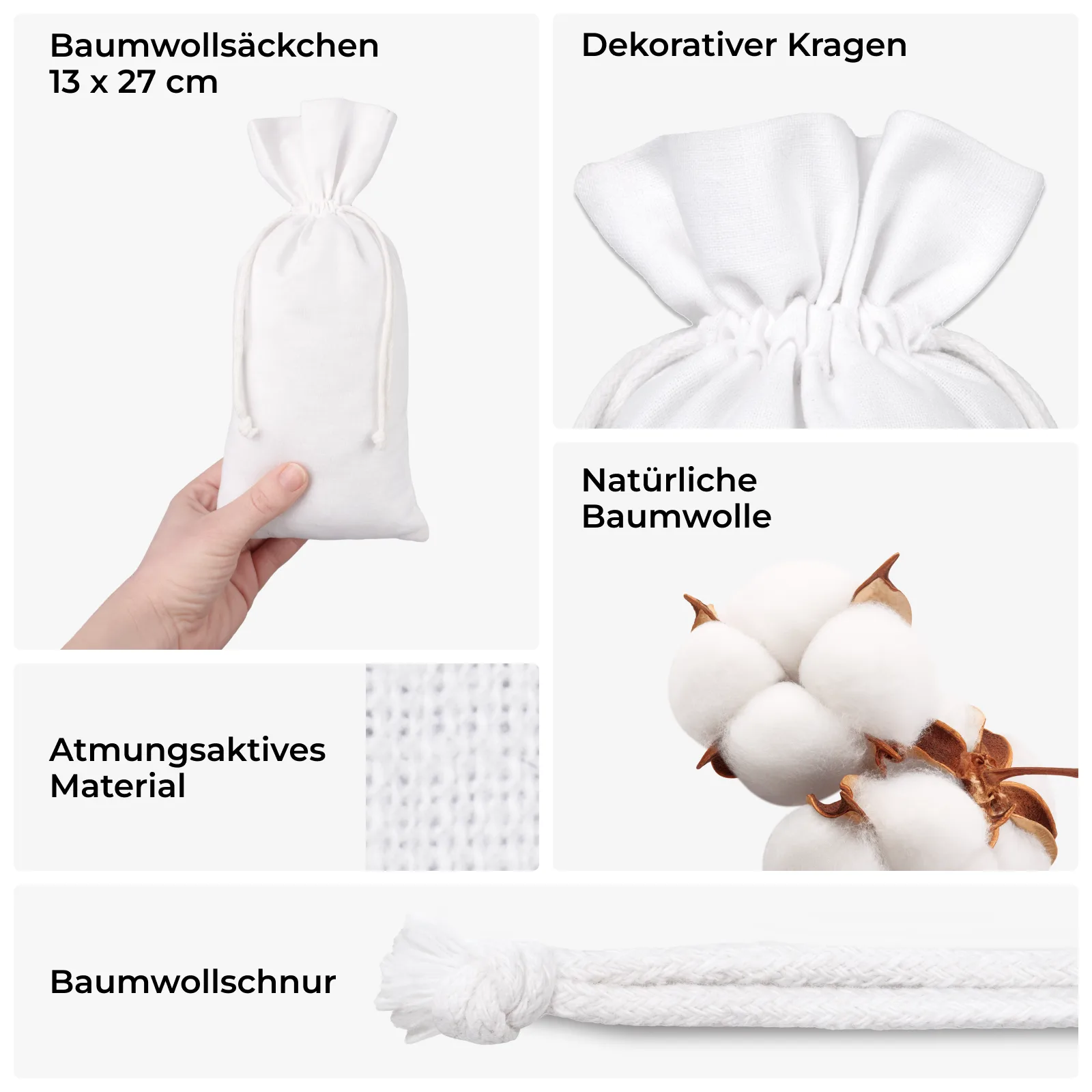 Baumwolle ist ein klassischer Stoff, der immer elegant aussieht und sich auch durch seine Haltbarkeit auszeichnet. Baumwollbeutel sind universell einsetzbar und daher für jede Situation geeignet. Das dargestellte Angebot beinhaltet 10 Stück.