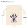 Die Säckchen bestehen aus 100 % Baumwolle in naturbelassener Farbe. Das Material hat eine leicht strukturierte, angenehme Haptik, ist luftdurchlässig und wirkt wie ein rustikales Naturgewebe. Der neutrale Farbton bildet einen dezenten Hintergrund für den lila Lavendelstrauß mit Schleife - so passen die Baumwollsäckchen im Provence-Stil perfekt zu Naturkosmetik, regionalen Produkten und Geschenksets im Eco-Look.