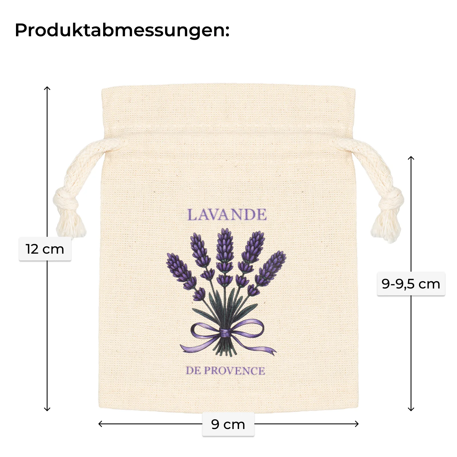 Baumwollsäckchen mit Lavendelmotiv 9 x 12 cm verbinden Dekoration und Funktion: