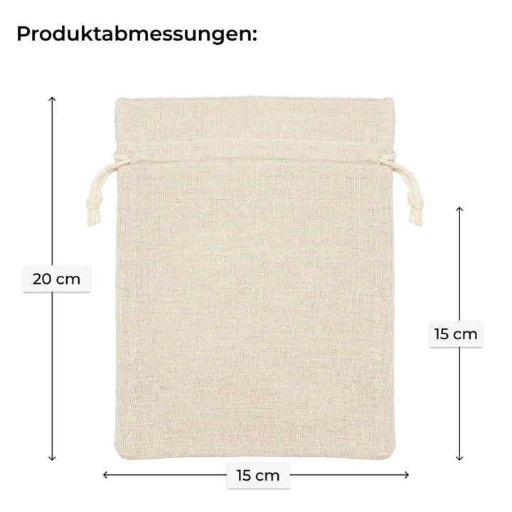 Entdecken Sie die strapazierfähigen und praktischen Stoffsäckchen in naturleinen Farbe. Die hier vorgestellten kleinen Säckchen haben die Maße 15 x 20 cm. Das Paket enthält ein Set mit 5 Stück Universalsäckchen.