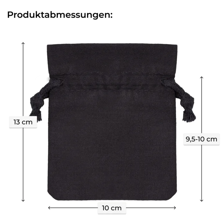 Kleine Universalbeutel aus eleganter und strapazierfähiger Baumwolle in schwarz Farbe und der Größe 10 x 13 cm. Das von uns angebotene Set besteht aus 10 Stück, so dass ein einmaliger Kauf für eine längere Zeit ausreicht!