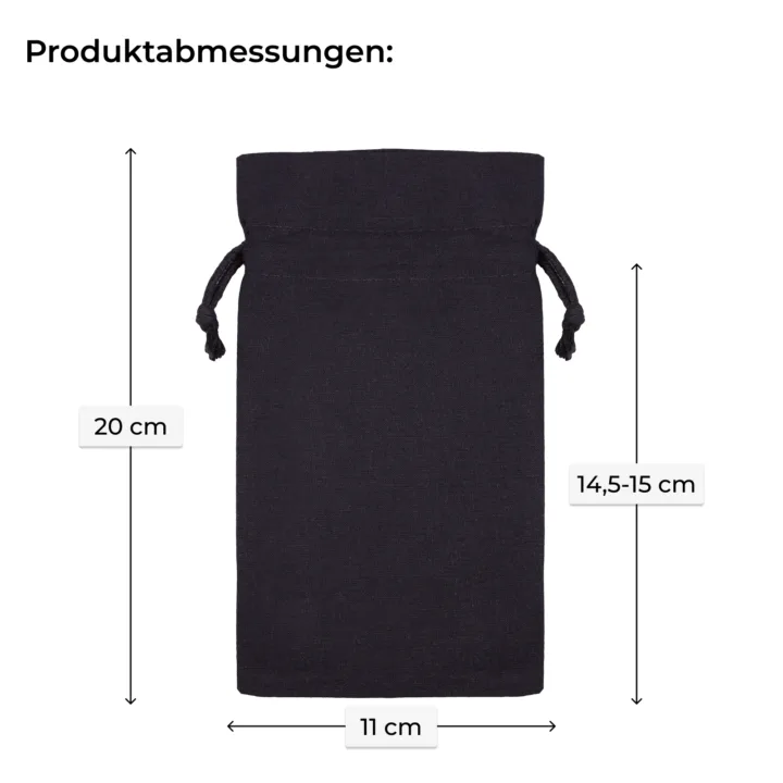 Kleine Universalbeutel aus eleganter und strapazierfähiger Baumwolle in schwarz Farbe und der Größe 11 x 20 cm. Das von uns angebotene Set besteht aus 10 Stück, so dass ein einmaliger Kauf für eine längere Zeit ausreicht!