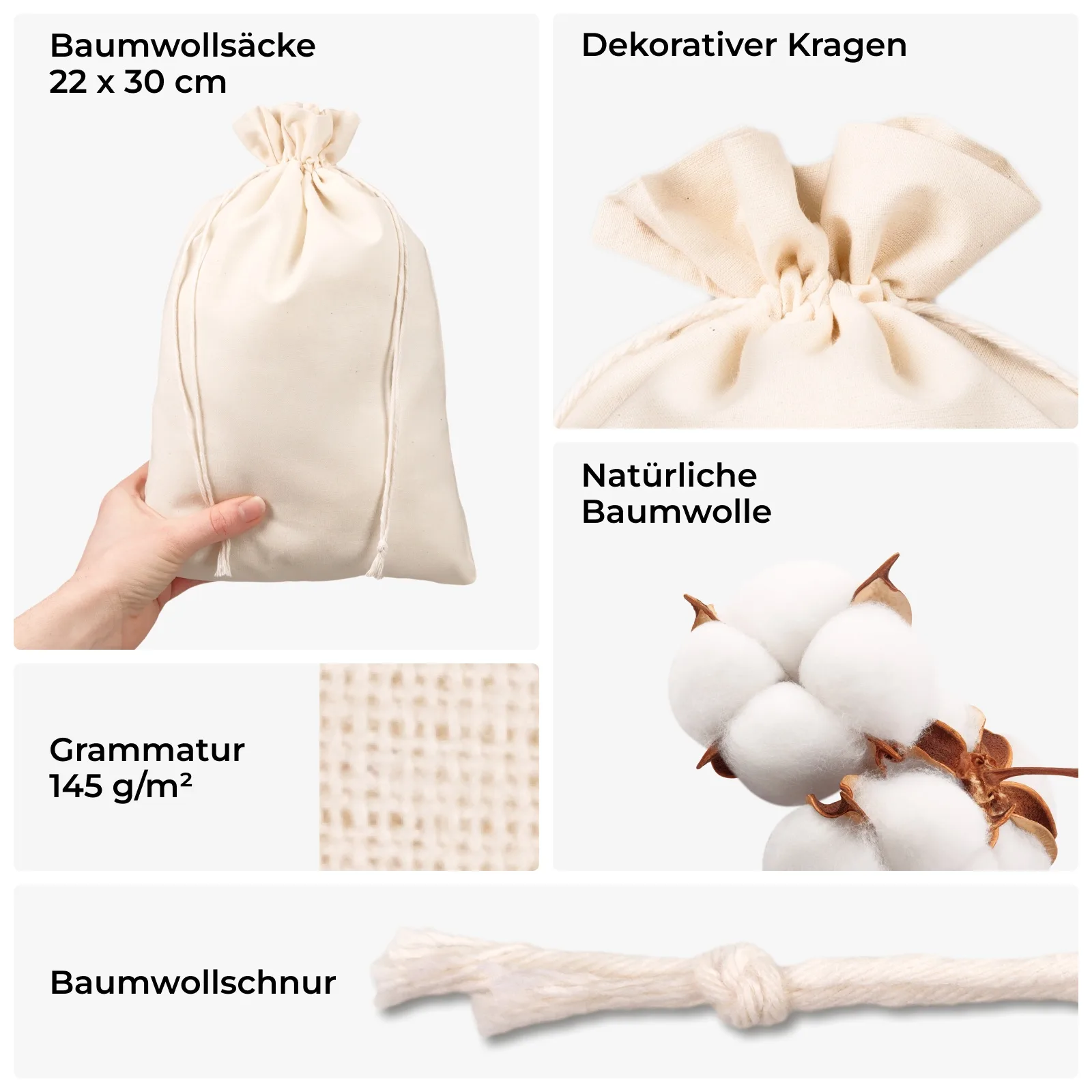 Baumwollsäcke 22 x 30 cm natur - 3er-Set - 100% Baumwolle