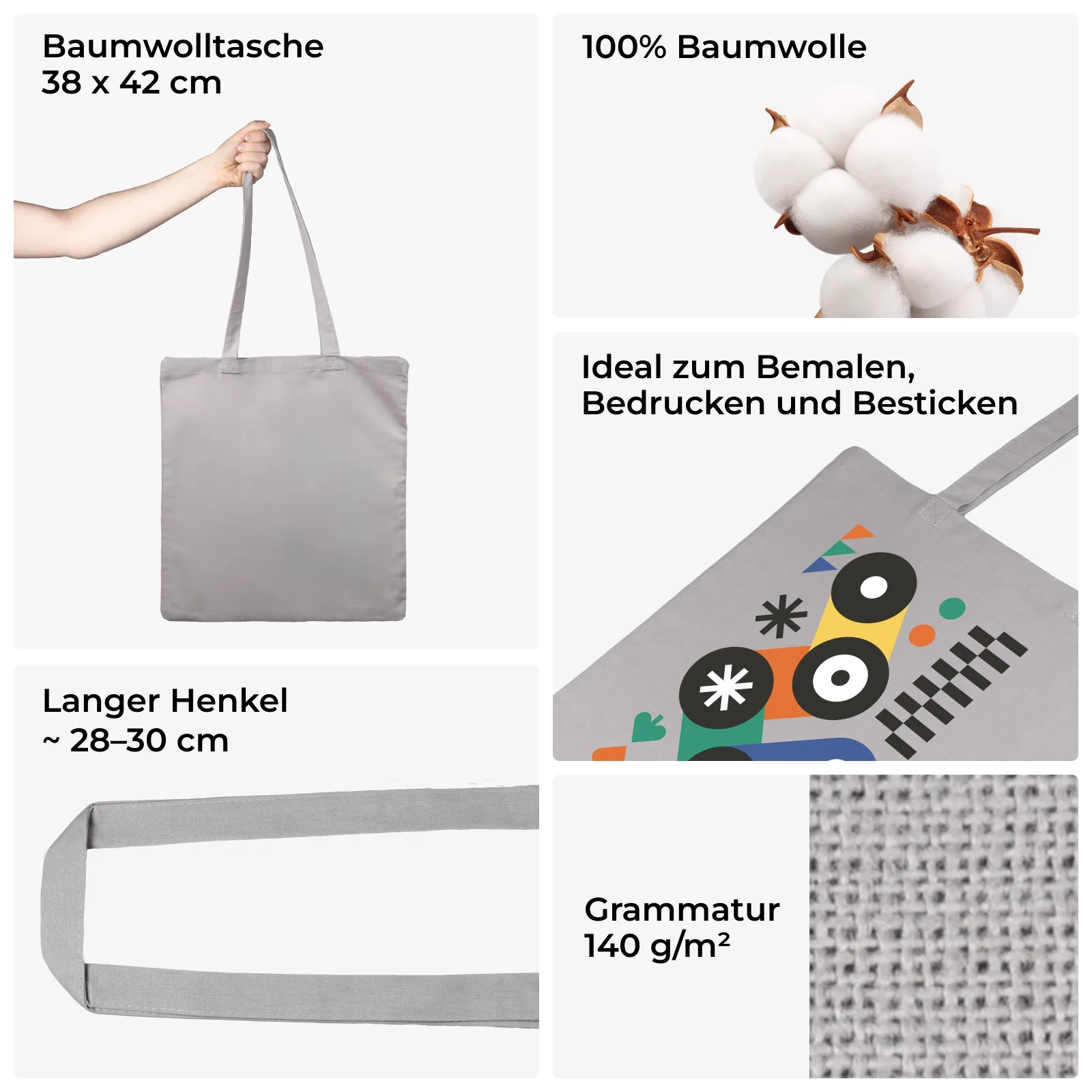 1 St. Baumwolltasche 38 x 42 cm mit langen Henkeln - grau