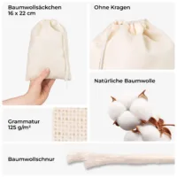 10 St. Baumwollsäckchen 13 x 18 cm - weiß