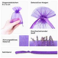 10 St. Organzabeutel 9 x 12 cm - dunkelviolett mit Druck (Lavendel) 2
