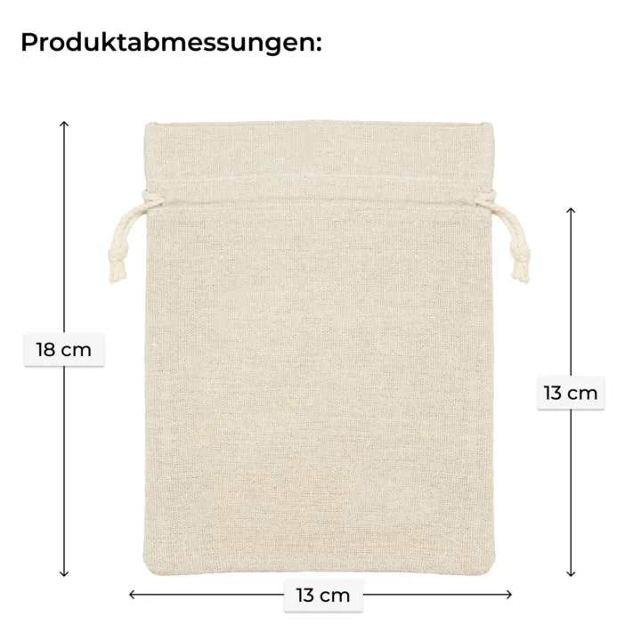 Bestellen Sie schöne und universelle Stoffsäckchen in naturleinen Farbe. Hier können Sie ein Set mit 10 Stück Säckchen in der Größe 13 x 18 cm mit doppeltem Baumwollband im Saum kaufen. Wir nähen diese kleinen Säckchen aus einem besonders strapazierfähigen Stoff.