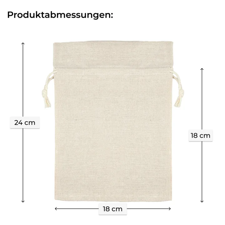 Der hier vorgestellte säckchen zeichnet sich durch hochwertige Verarbeitung (robuster Stoff, starke Nähte) und originelles Aussehen aus. Der Stoff aus dem wir ihn nähen, fühlt sich angenehm an und sorgt für eine gute Luftzirkulation. Außerdem ist er sehr strapazierfähig, abrieb- und knitterfest. An dieser Stelle bieten wir Verpackungen aus Stoff mit Baumwolle an, die sowohl die Struktur als auch die Farbe des Materials natürliche Leinen imitiert. Der Zusatz von synthetischen Fasern macht es zu einer wirklich langlebigen Mehrwegverpackung!