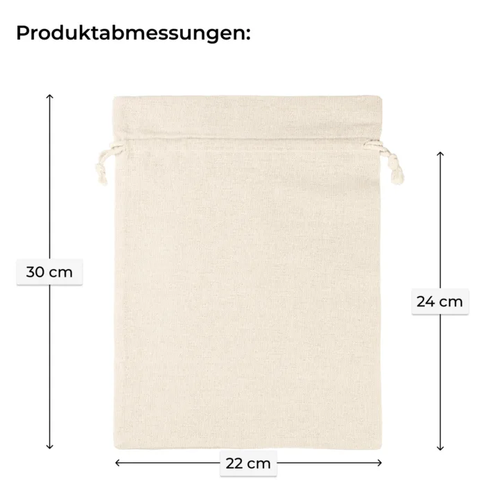 Diese kleinen säcke sind aus Baumwollgewebe mit synthetischen Fasern, die sich angenehm anfühlen und luftdurchlässig sind. Der Stoff sieht sehr stilvoll aus - er reproduziert die Textur und Farbe von natürlichen Leinen. Sein großer Vorteil ist seine außergewöhnlich hohe Haltbarkeit, Abrieb- und Knitterfestigkeit. Diese Mehrwegverpackungen sind die perfekte Wahl!