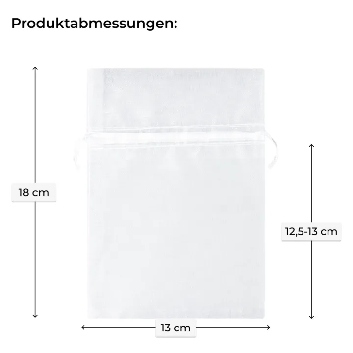 Die Organzasäckchen 13 x 18 cm in Weiß sind vielseitige Geschenk- und Produktbeutel für private Anlässe sowie den professionellen Einsatz. Im Set erhalten Sie 25 Stk. dieser leichten, halbtransparenten Säckchen mit doppeltem Satinzug und dekorativem Abschluss - ideal für kleine Präsente, Kosmetikproben, Schmuck oder Give-aways.