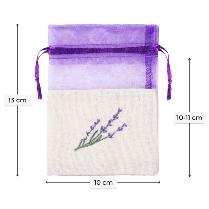 Organzasäckchen mit Baumwolle 10x13 cm - 5er-Set - Lavendelduft trifft Stickeleganz