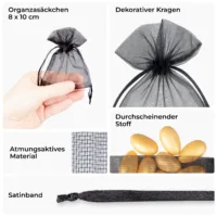 Organzabeutel, Leinen-, Jute- und Baumwollsäckchen von hoher Qualität stellen eine umweltfreundliche Verpackungslösung für Handarbeitsbeutel. Sie sind nicht nur praktisch, sondern dienen auch als stilvolle Beutel, die die Einzigartigkeit Ihrer Produkte betonen. Unsere Verpackung schützt nicht nur effektiv Seifen und Kerzen und präsentiert sie, sondern verleiht ihnen auch ästhetischen Charme und optischen Wert. Entdecken Sie, wie Ihre Seifen und Kerzen in eleganter und umweltbewusster Weise präsentiert werden.