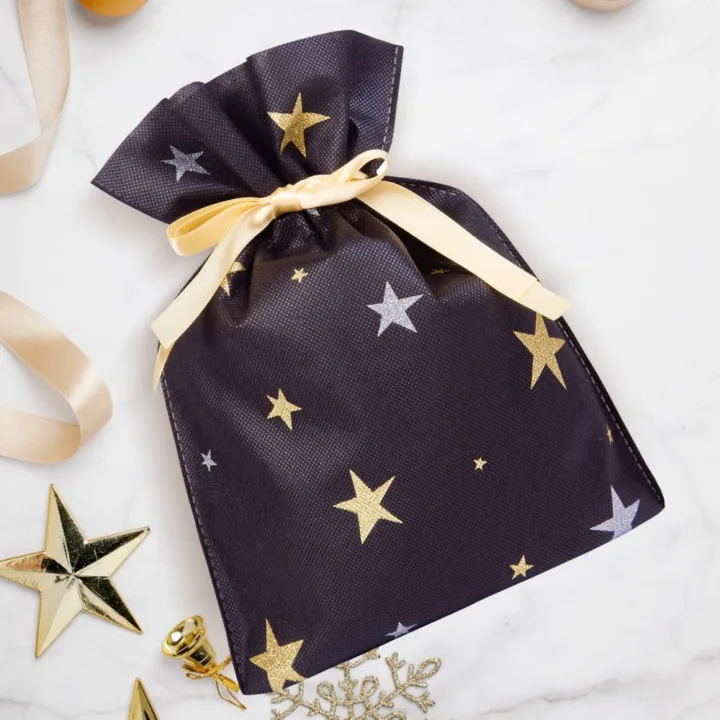 Vliesstoffbeutel Weihnachten mit Sternmotiv - wiederverwendbare Geschenkverpackung 22 x 31 cm
